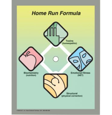 The Home Run Formula Chart is an excellent “Patient Education” tool that simply describes the concept of the 4 bases of health. This laminated color chart measures 17″ x 22″ and can be framed or displayed as is.