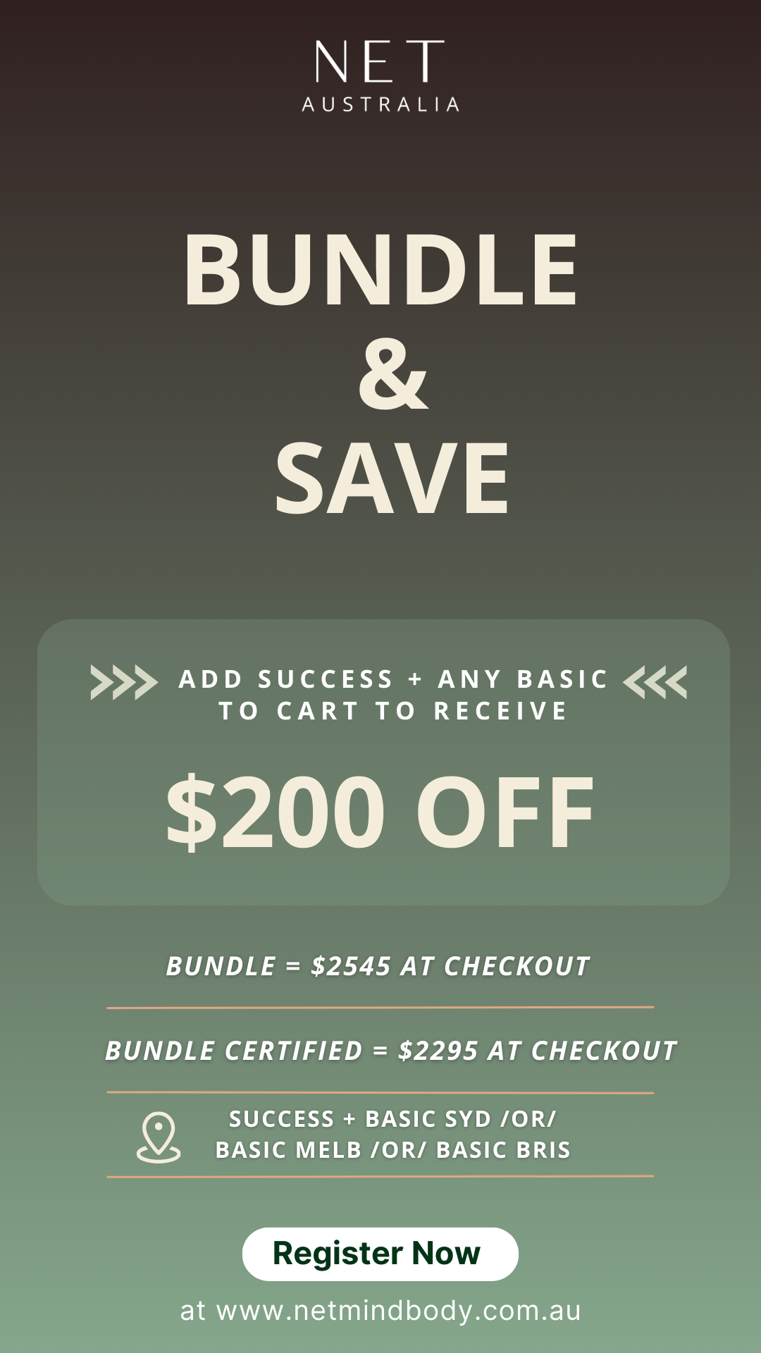 Valid for NET Certified and returning practitioners who have attended a NET SUCCESS seminar previously.